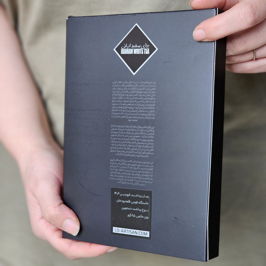 برای تولید این چای در روزهای سرد فروردین، زمانی که تنها جسورترین بوتهها جوانه زدهاند، ما بهصورت دستی برداشت یک جوانه و دو برگ را از بوتهها انجام دادهایم. این جوانهها بهصورت انتخابی برداشت میشوند و جوانترین نوع برگها در میان محصولات ما هستند؛ به همین دلیل فرآیند برداشت زمانبر و دقیق است. برگهای برداشتشده برای تولید چای سفید باید فرآیند اکسیداسیون مناسبی طی کنند تا بهترین کیفیت حاصل شود. برداشت «یک جوانه و دو برگ» معمولاً طعمی غنیتر نسبت به چایهایی که تنها از جوانه تولید میشوند ایحاد میکند و دیدگاه ما برای ذائقه ایرانی مناسبتر خواهد بود. این نوع برداشت برای چای سفید، در چین با نام Bai Mu Dan و در جهان با نام White Peony شناخته میشود و طرفداران زیادی دارد.